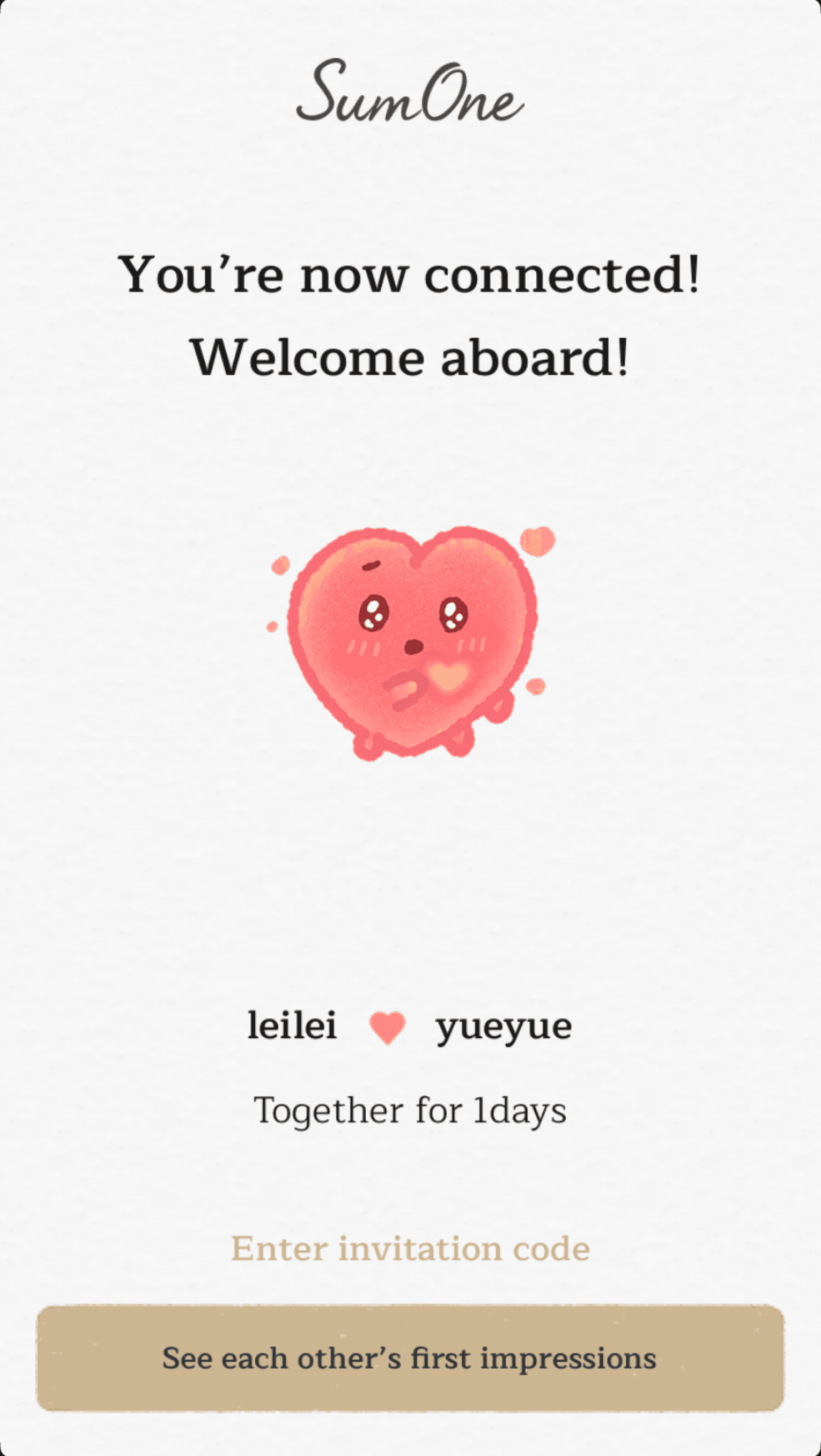 A relationship product lives or dies in the first five minutes. For an MVP whose business model is dependent on user stickiness and behavioral loops, I needed to ensure that onboarding was quick and optimized for low click rate. I approached this by providing social logins and minimal form elements so that users completed key sign up in < 5 screens.