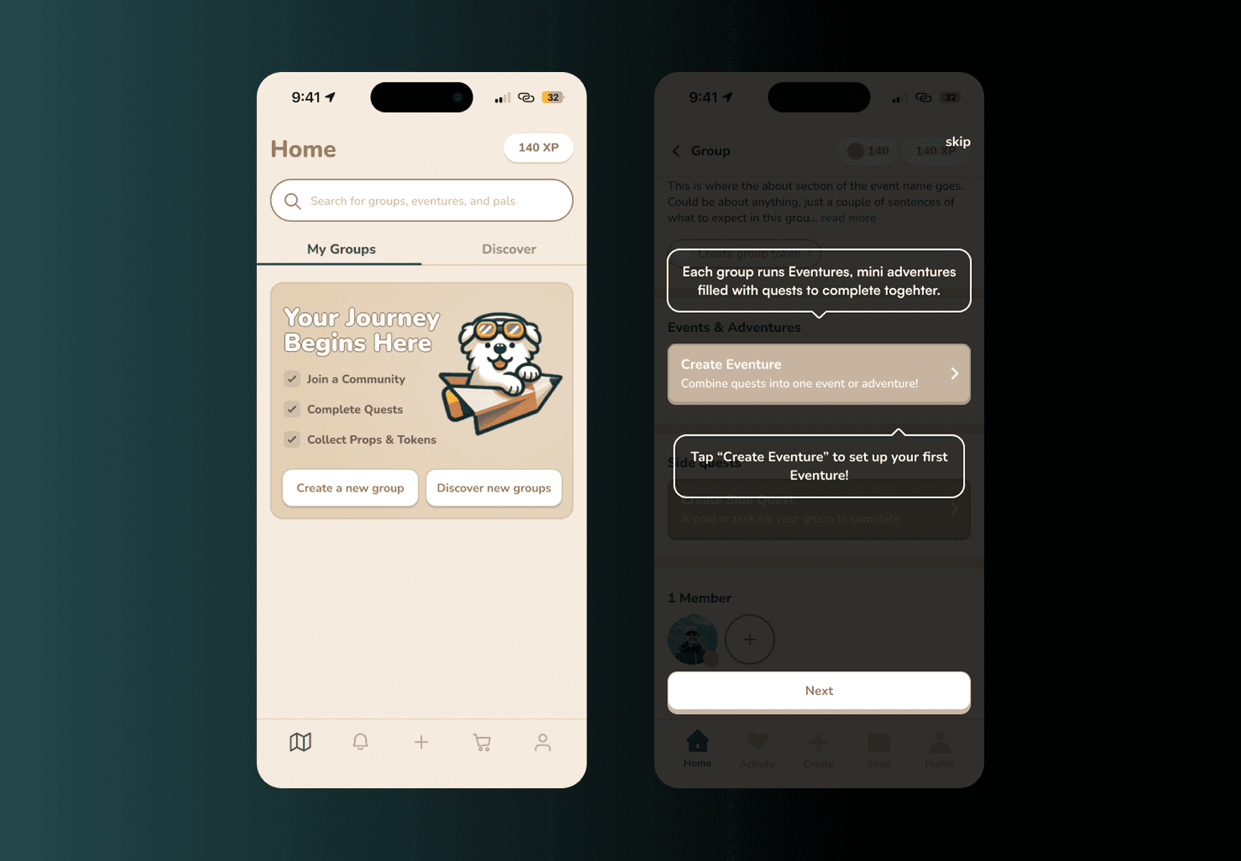 Props is a gamified community-building and reward platform for social groups, charities, and businesses. It aims to incentivize users to join communities and win “props” by participating in their events. In this project, we transformed Props’ confusing MVP into a clear, learnable experience that helps users understand what to do, where to go, and why it matters.