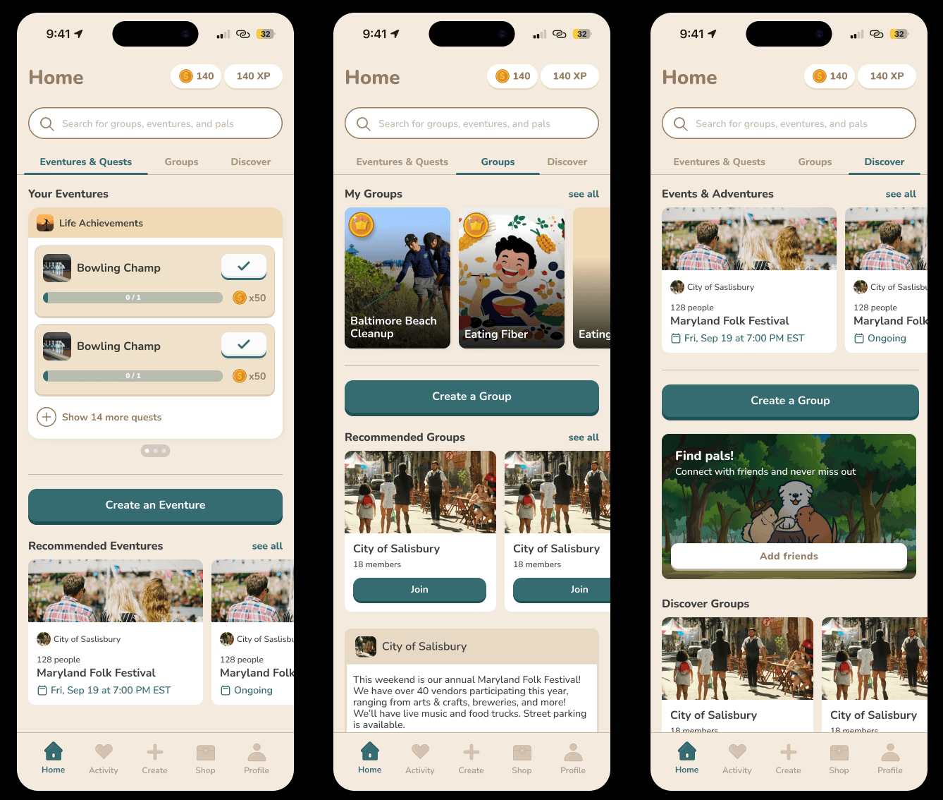 While the project was limited to an MVP scope, the founders provided feedback that the Home screen design might violate user expectations, given that "My Groups" displayed an At-a-Glance view of a user's joined Eventures.